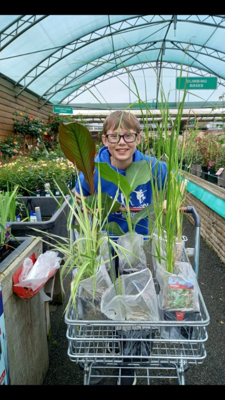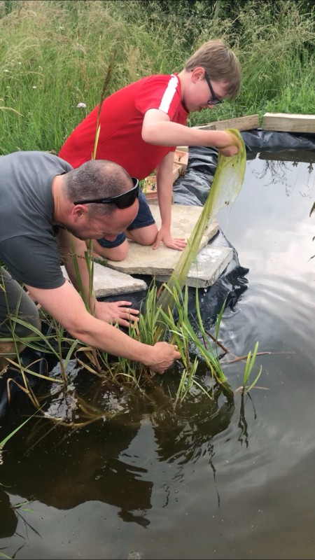 After we asked around for some pond plants and to our surprise loads of people had some. We also were looking for frogspawn but we were too late. They had already grown into frogs so I will get some next year.