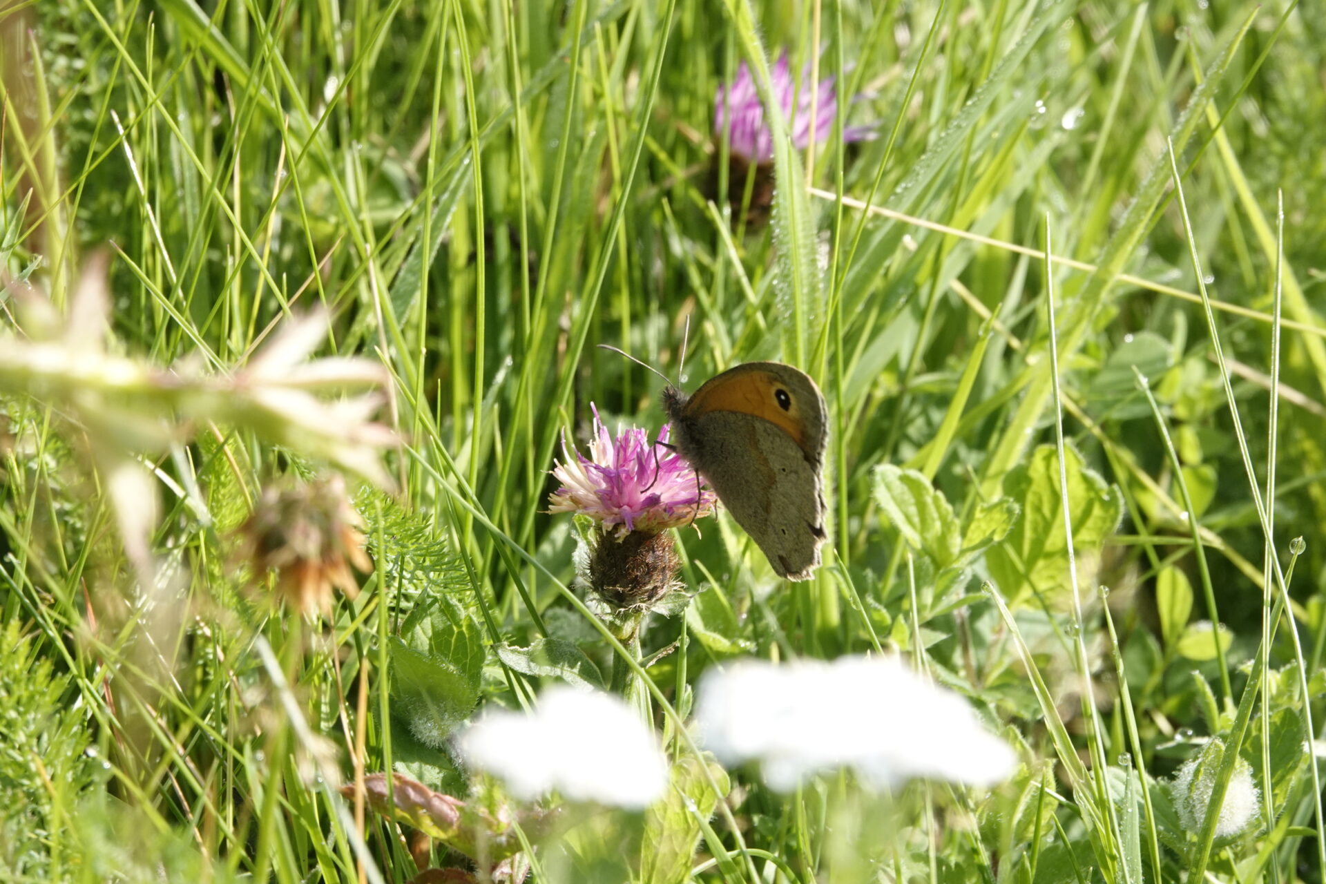 Another butterfly that can be elusive but was out in some number, was the wall brown. A dull name for a quite stunning little butterfly, that likes to bask on walls, or in this case on the path in front of me, guiding me along the way.